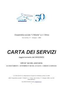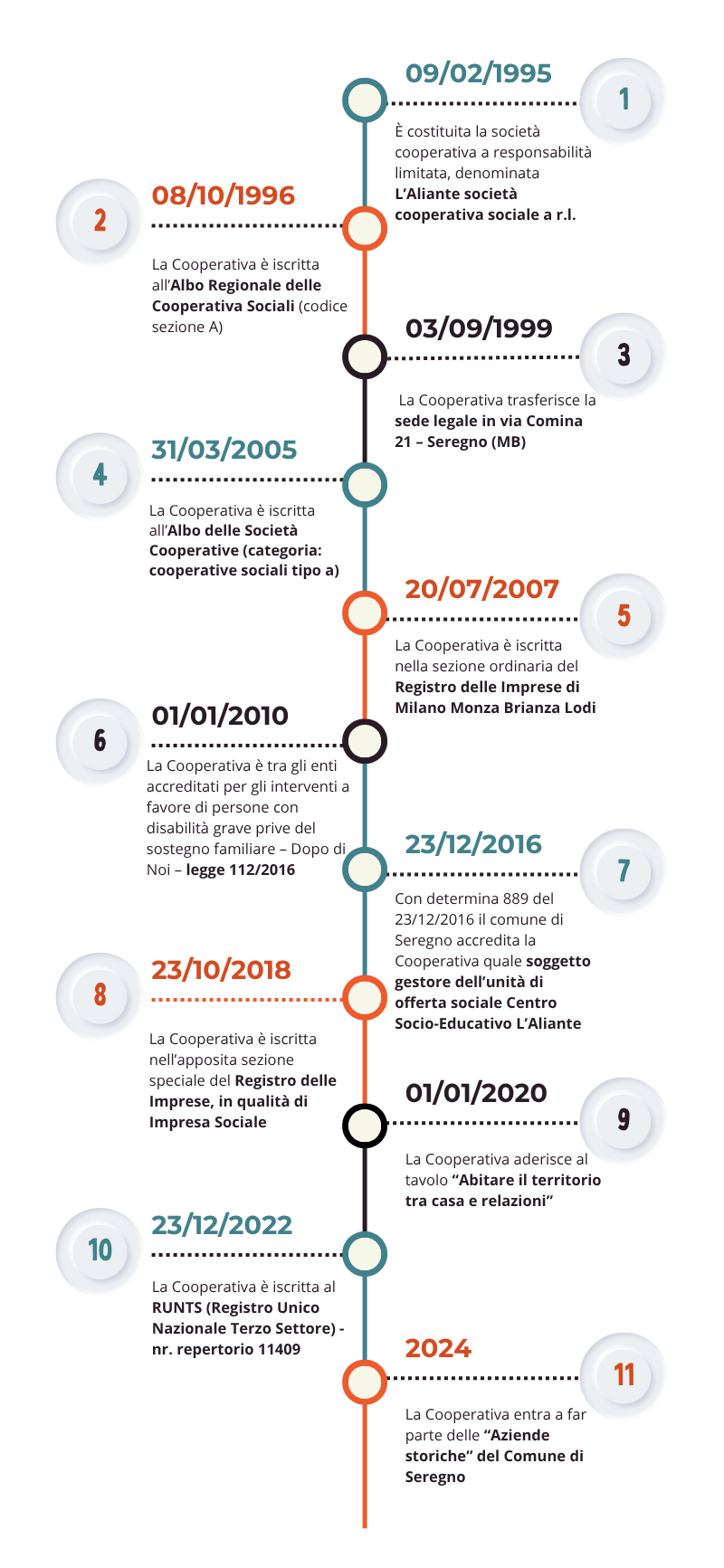 La cooperativa sociale "L'Aliante" a r.l. è iscritta all’Albo Regionale delle cooperative sociali della Regione Lombardia Sez. A, N° 336 ed all’Albo nazionale delle Cooperative